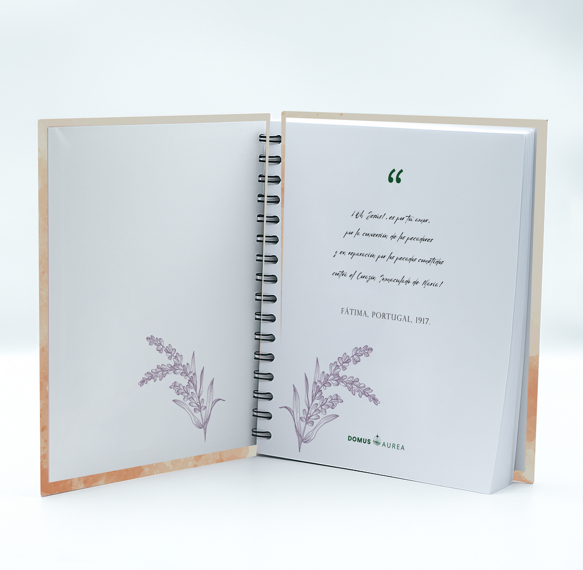 Libreta católica de 100 hojas con diseño inspirado en la devoción del Santo Rosario